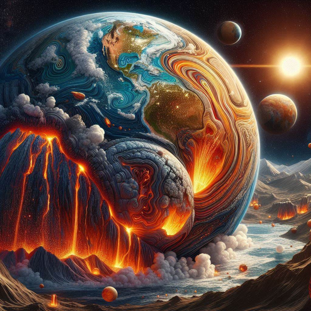 지구는 약 45억 년 전에 태양계의 형성과 함께 생성되었습니다. 초기 지구는 매우 뜨겁고 화산 활동이 활발했으며, 여러 물질들이 충돌하면서 점차 현재의 형태로 안정화되었습니다.