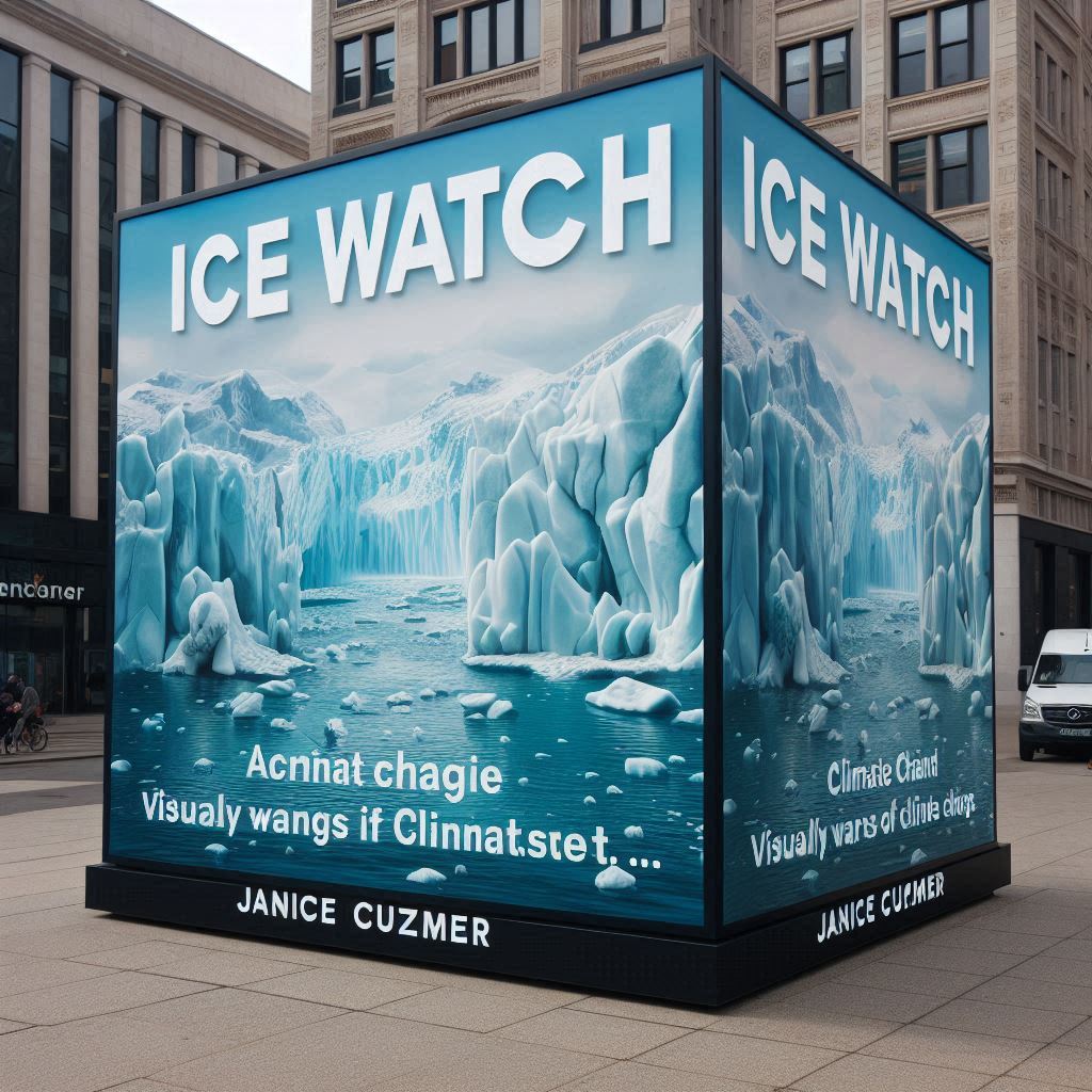 재니스 커즈머는 "Ice Watch"라는 설치미술을 통해 기후 변화를 시각적으로 경고합니다. 이 작품은 그린란드에서 가져온 빙하 조각들을 도심에 설치하여, 관객들에게 빙하가 녹아내리는 과정을 직접 경험하게 합니다.