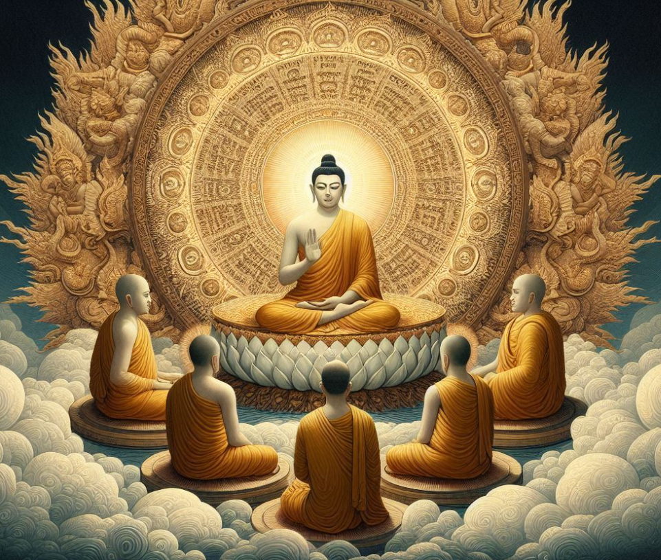 깨달음을 얻은 후, 싯다르타는 이를 널리 알릴 필요성을 느꼈습니다. 처음으로 다섯 명의 비구를 찾아가 자신의 깨달음을 설파했습니다. 이 첫 설법은 초전법륜으로 알려져 있으며, 불교의 핵심 교리를 포함합니다. 이 다섯 비구는 그의 가르침을 받아들이며 최초의 불교 공동체, 즉 상가(Sangha)가 형성되었습니다.