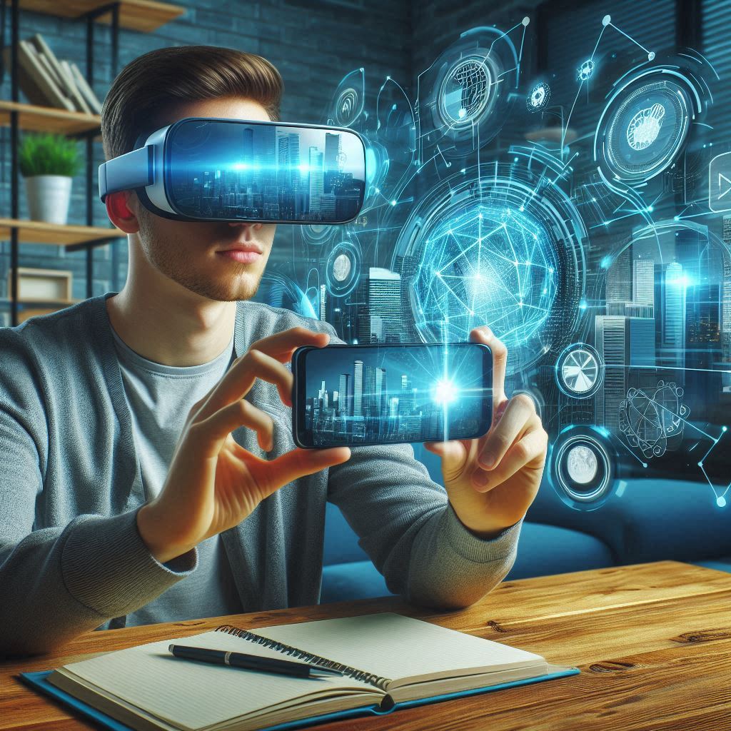 AR(증강현실)은 스마트폰이나 AR 글래스를 통해 현실 세계에 가상의 이미지를 덧입히는 기술입니다. 사용자는 화면이나 글래스를 통해 실제 물체 위에 가상의 정보를 겹쳐서 볼 수 있습니다. 예를 들어, Microsoft의 HoloLens나 Apple의 ARKit을 통해 사용자는 현실 공간에 3D 이미지를 띄우고, 그 이미지와 상호작용할 수 있습니다. 이는 완전히 공중에 떠 있는 홀로그램과는 다르지만, 사용자가 보는 현실과 가상의 객체가 융합되는 경험을 제공합니다.