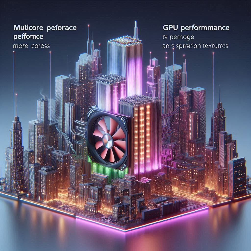 렌더링은 대량의 연산을 요구하므로 멀티코어 성능과 GPU 성능이 매우 중요합니다. CPU는 코어 수가 많을수록 유리하고, 그래픽카드(GPU)가 고성능일수록 렌더링 속도가 빨라집니다. 또한, 고해상도 텍스처와 같은 큰 파일을 다루기 때문에 메모리와 저장장치 성능도 중요합니다.