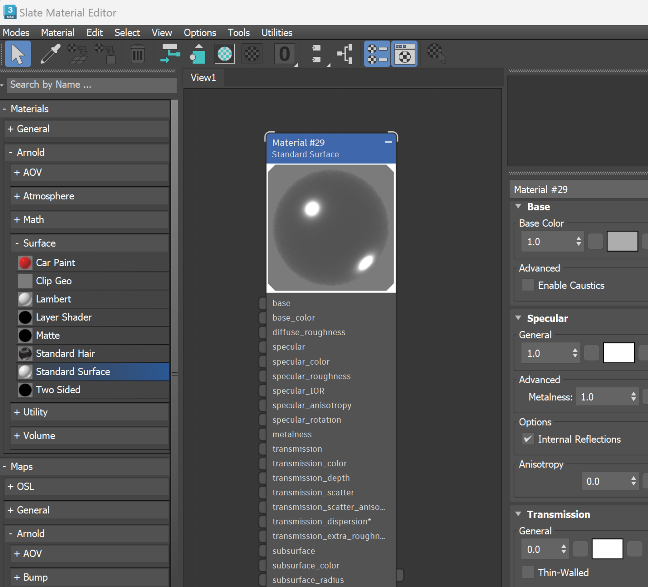 - 3ds Max에서 Arnold 카테고리에서 Standard Surface를 추가합니다.