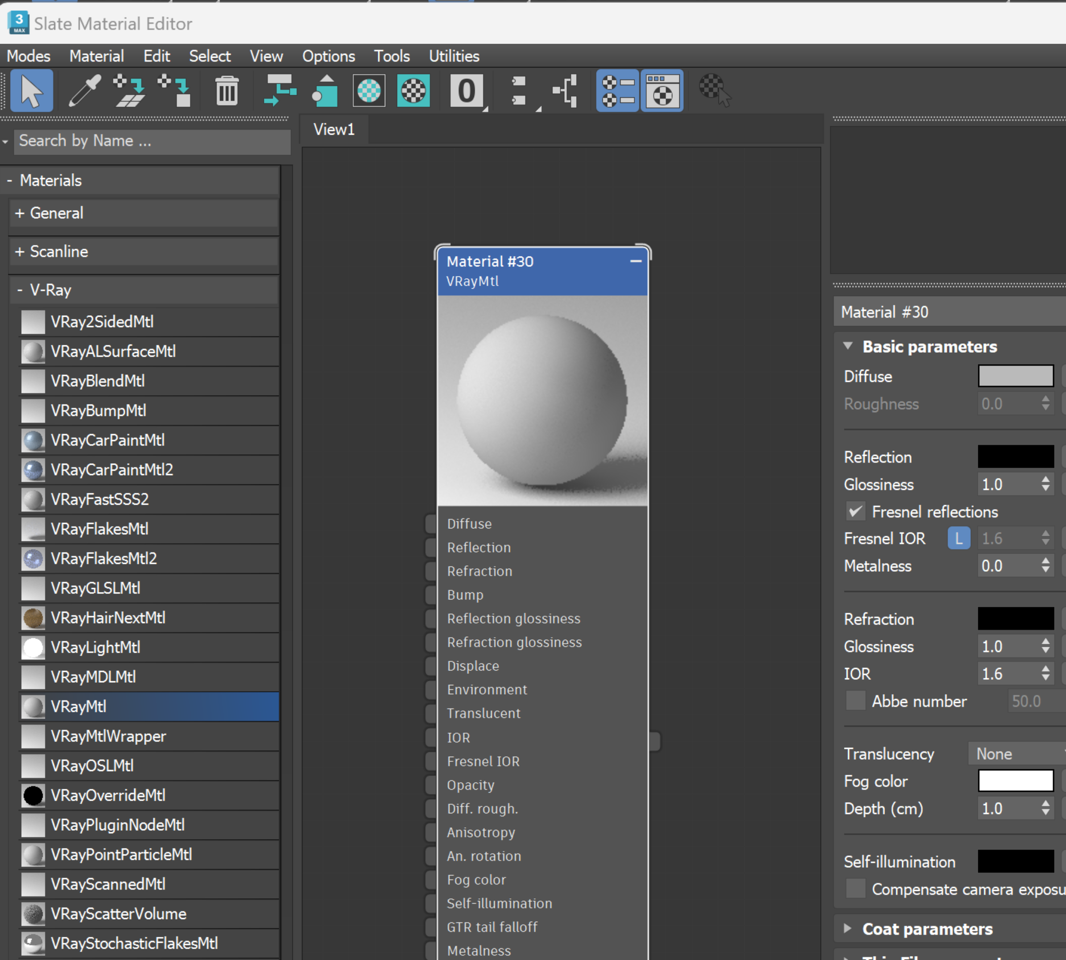 - 3ds Max에서 Material Editor를 열고, V-Ray Material을 추가합니다.